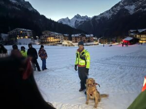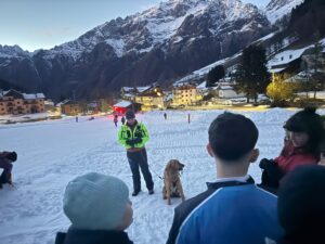 valanga e il suo conduttore. Hanno assistito a una dimostrazione di ricerca sotto la neve, scoprendo