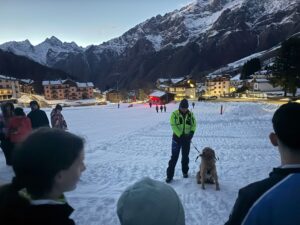 Nel pomeriggio, durante la settimana bianca a Lizzola, i ragazzi hanno incontrato un cane da