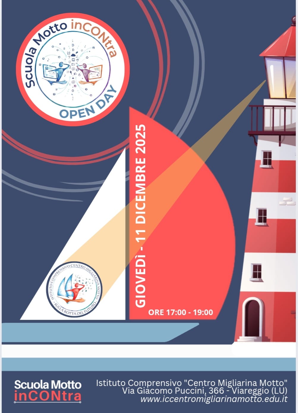 Il Dirigente scolastico prof. Davide Cammisuli, i docenti e gli alunni della scuola secondaria di primo grado “Raffaello Motto” sono lieti di invitare la comunità di Viareggio all’ Open Day dell’11 dicembre 2025.