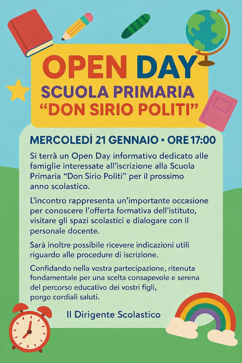 Oggetto: Secondo Open Day, scuola primaria “Don Sirio Politi” 21 gennaio 2026.