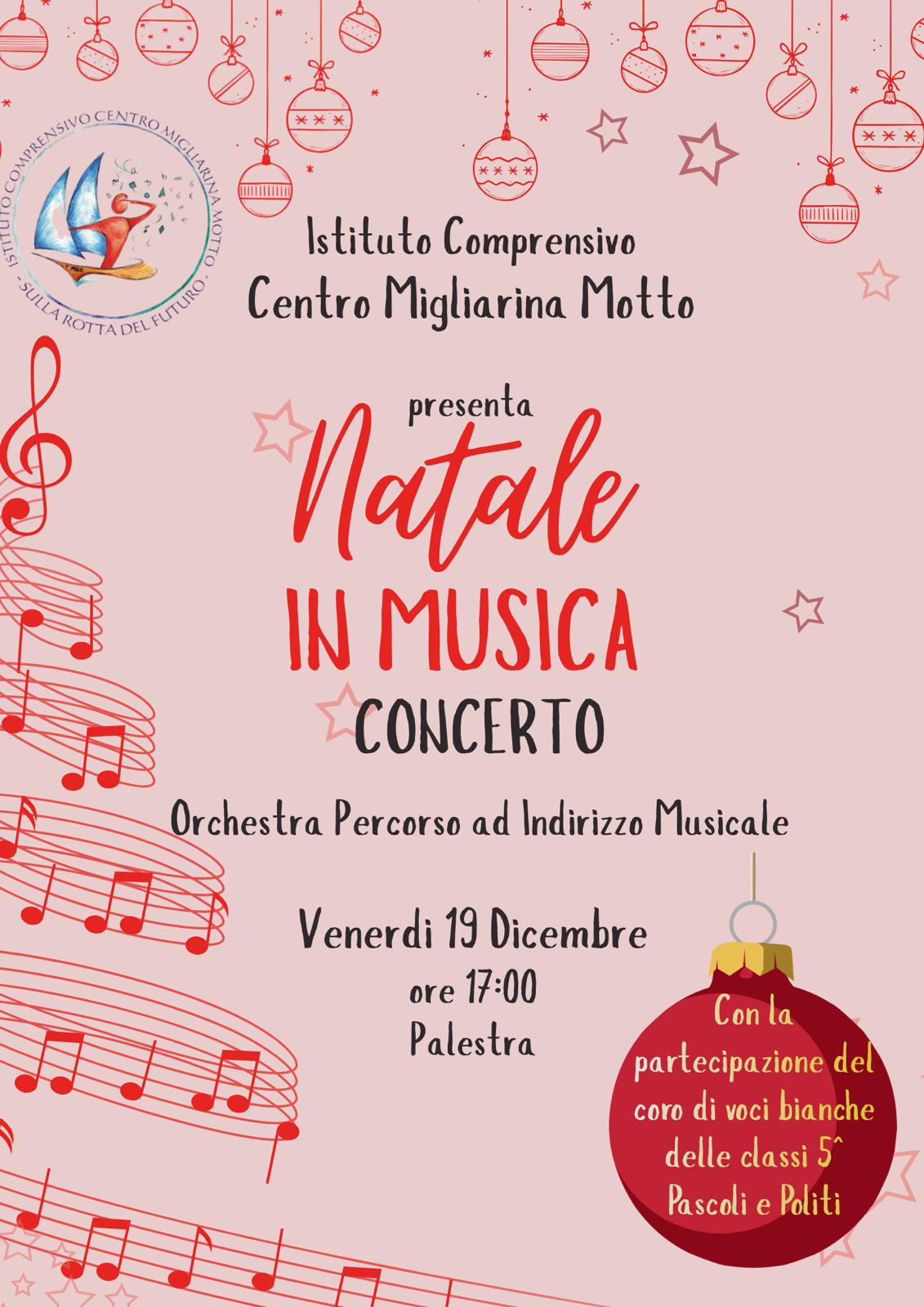 I.C. Centro Migliarina Motto presenta “Natale in musica” – Concerto dell’Orchestra del percorso ad indirizzo musicale con la partecipazione del coro delle voci bianche delle classi quinte della scuola primaria “Don Sirio Politi” e Giovanni Pascoli”.
