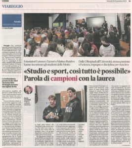 Gli alunni, in occasione del primo incontro del progetto “Adotta un campione”, hanno incontrato due atleti della squadra nazionale di nuoto: Lorenzo Zazzeri e Matteo Restivo.