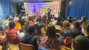 Mercoledì 5 marzo 2025, le classi prime della scuola secondaria di primo grado “Raffaello Motto”, hanno partecipato al Progetto Smile Theatre con lo spettacolo “Jenny Poppins”, tenuto nell’aula Magna dell’Istituto, con attori madrelingua inglesi.